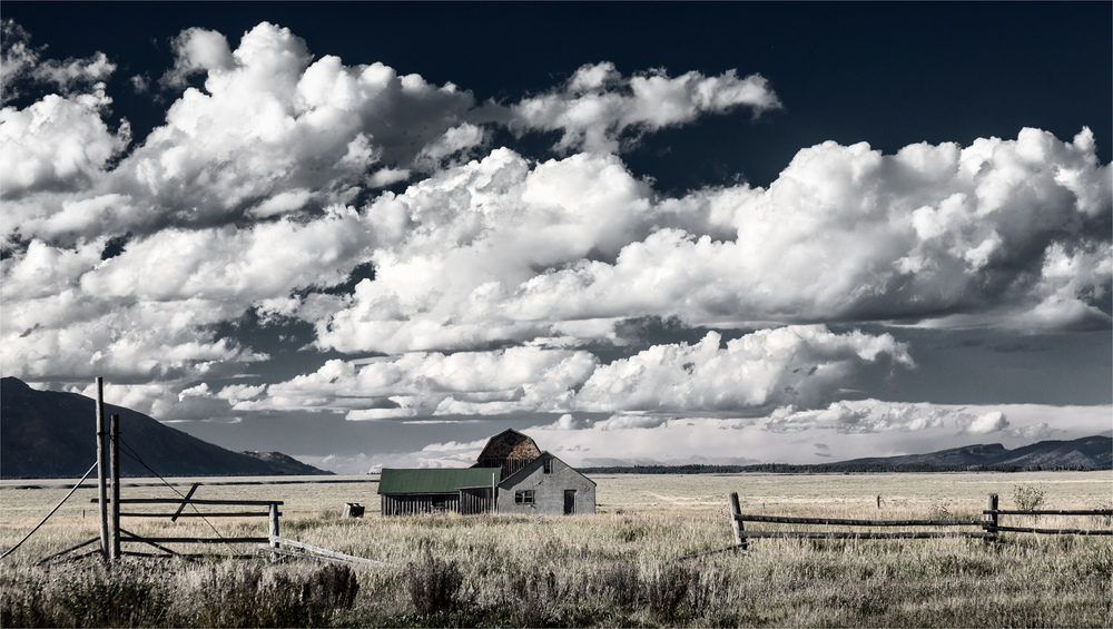 Deine mittlere Brennweite erzeugt auch den Eindruck, dass die Wolken fast auf dem Dach des Hauses aufliegen, als gehörten sie dazu - zu Haus und Weideland. Sie gehören dazu!