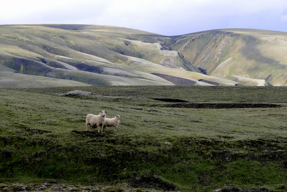 Was ist an diesem Foto das Eindrücklichste? Insgesamt ist es farbharmonisch mit vielen Grün-/Grau-/Braunfacetten, wobei das Auge vom dunkleren Vorder- zum lichten Hintergrund gelenkt wird. Oder anders herum. Denn das Helle beruhigt, von keiner großartigen Vegetation unterbrochen. Ich finde diesen Anblick der Hügel außerordentlich erholsam und auch aufhellend. So gut passen die zwei Schafe dazu! Er und sie, alleine in der großen Weite, stehen einfach da und schauen... wer da verharrt und zu ihnen herüberschaut, was am Horizont los ist, woher der Windhauch weht, ob morgen wohl alles so bleibt wie es gestern schon war und heute blieb. Genuss pur, beruhigend für uns Menschen. Zwei Freunde in freundlicher Landschaft. Für uns geschaffen zum Genuss.