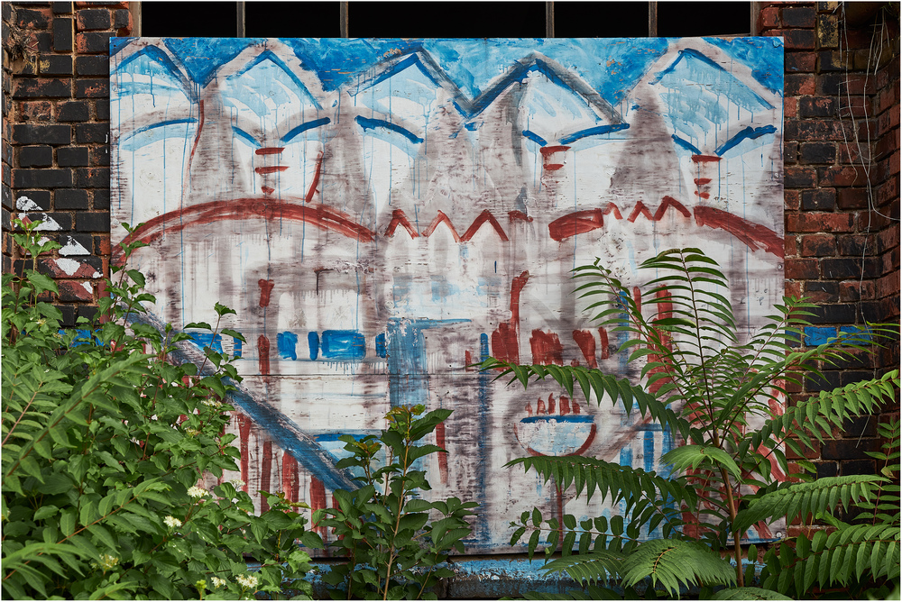 Das sieht aus wie im heimischen Atelier gemalt und speziell an dieser Stelle aufgehängt ... aber wer weiß das schon so genau ... auf jeden Fall erobert sich auch das die Natur langsam aber sicher zurück !