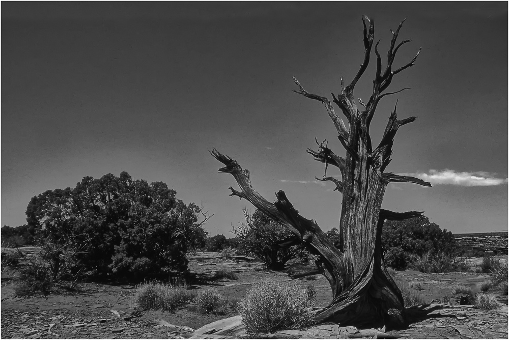 Welche Metamorphosen der Wacholder doch so bewerkstelligen kann! Du hast selbige in einem imposanten SW festgehalten. Nicht nur der Hell-Dunkel-Kontrast, sondern auch die unterschiedlichen Formen machen die Qualität des Fotos aus. Der bizarre Geselle ist natürlich der Eyecatcher!