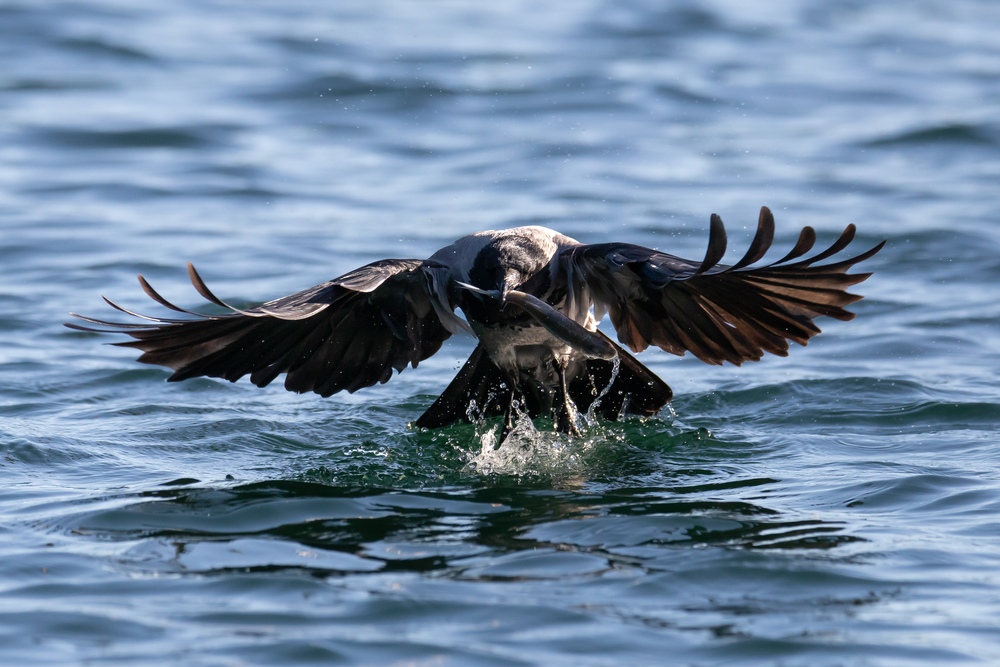 Da hat sich die Krähe aber einen dicken Fisch geangelt. Tolle Aufnahme im richtigen Moment! Ich wusste nicht, dass Nebelkrähen selber auf die Jagd im Wasser gehen.