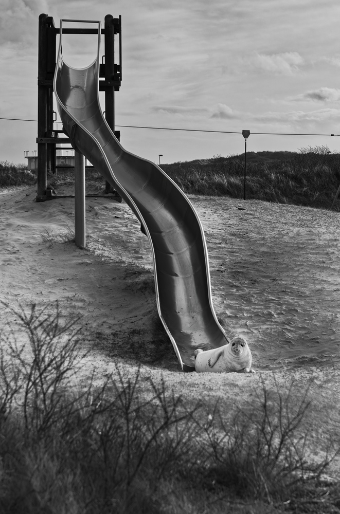 Helgoland im Dezember, der Jahreswechsel steht vor der Tür. Seit den 90er Jahren haben Kegelrobben die kleine Insel in der Nordsee wiederentdeckt. Die Geburtenzahlen junger Robben steigen von Jahr zu Jahr. Zwischen November und Januar kommen die Robben an Land und bringen ihre Jungen zur Welt. Zum Schutz vor den Winterstürmen dringen die Neugeborenen immer weiter in das Landesinnere vor und suchen Schutz. In dieser Zeit zwingt der Tierschutz den Menschen zur Rücksichtnahme und drängt ihn immer weiter zurück. Eine kleine Vertiefung am Ende der Rutsche, bietet einer jungen Robbe zum Jahreswechsel ein ruhiges Plätzchen, während sie auf die Rückkehr ihrer Mutter wartet.
