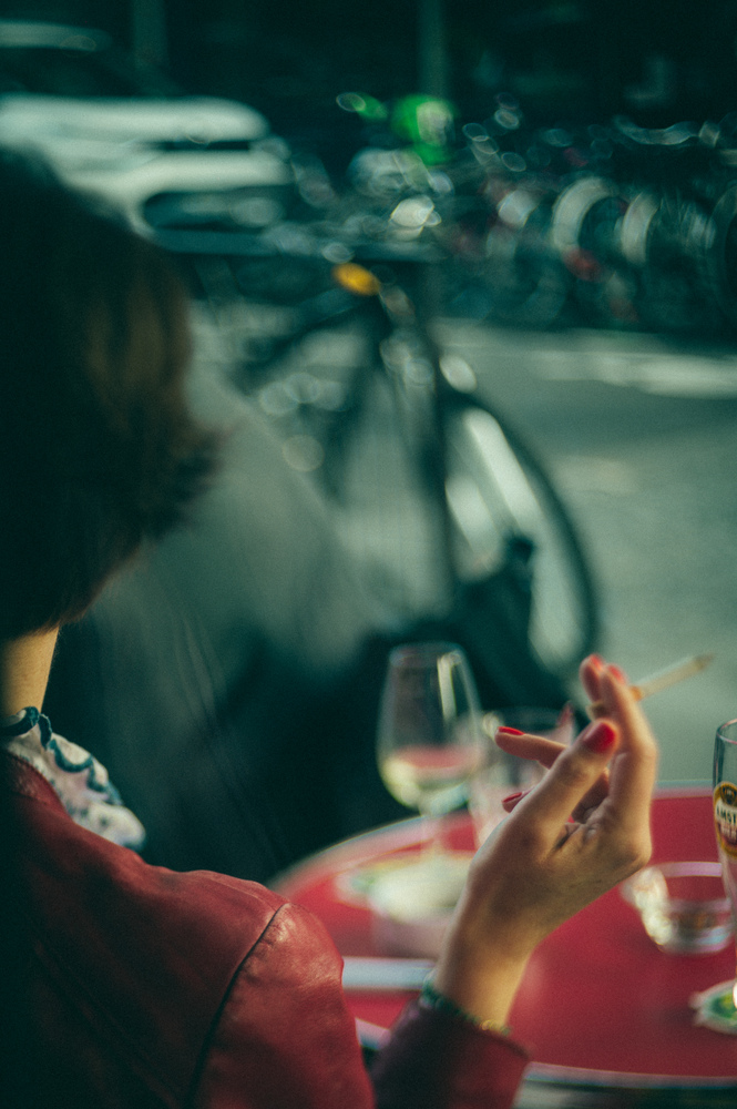 Während man selbst das Bild genüsslich betrachtet, blickt die gechillte Dame auf die erzitterte "Ruhe" der Fortbewegungsmittel.