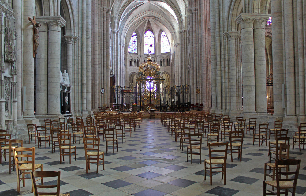 ...während der Corona-Krise in der Kathedrale Saint-Etienne von Sens (Bourgogne/Frankreich)