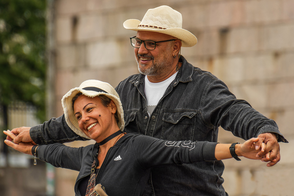 Das ist eine sehr schöne und gut arrangierte Aufnahme von den beiden. Ein Bild mit lächelnden und gut gelaunten Personen, die sich an beiden Händen halten, offen für die ganze Welt. Mehr von solchen Bildern in diesen schwierigen Zeiten! Gruß Michael