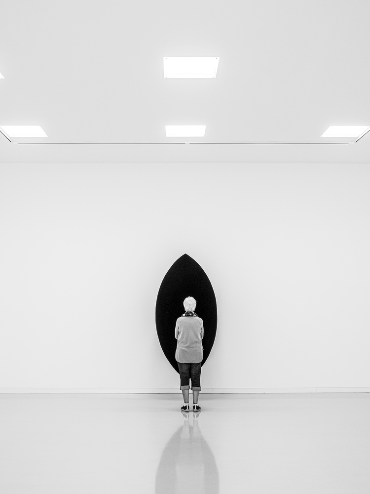 13.05.2025Das Kunstwerk beansprucht offenbar den gesamten Raum für sich - zumindest eine ganze Wand. Die Rezipientin scheint den Zusammenhang zwischen beidem zu ergründen. Interessante Aufnahme.