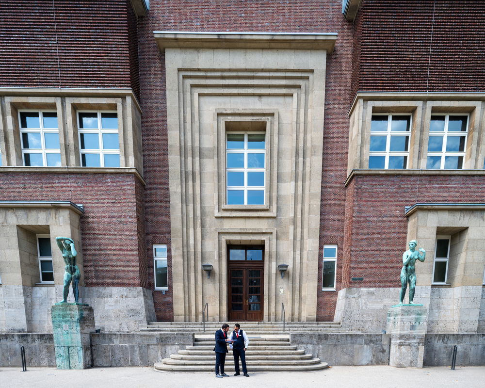 16.06.2025Dieses monumentale Gebäude, geprägt von der Industriearchitektur, ist bekannt für seine Geradlinigkeit und Symmetrie, die im Eingangsbereich durch die beiden Aktfiguren eine gewisse Auflockerung erfahren. Durch die starke optische Verzerrung in deiner Aufnahme, Michael, wird dein Foto dieser Gebäudecharakteristik meines Erachtens nicht gerecht. Die beiden Museumsmitarbeiter stehen aber in einem gelungenen Spannungsverhältnis zu Gottschalks Skulpturen.
