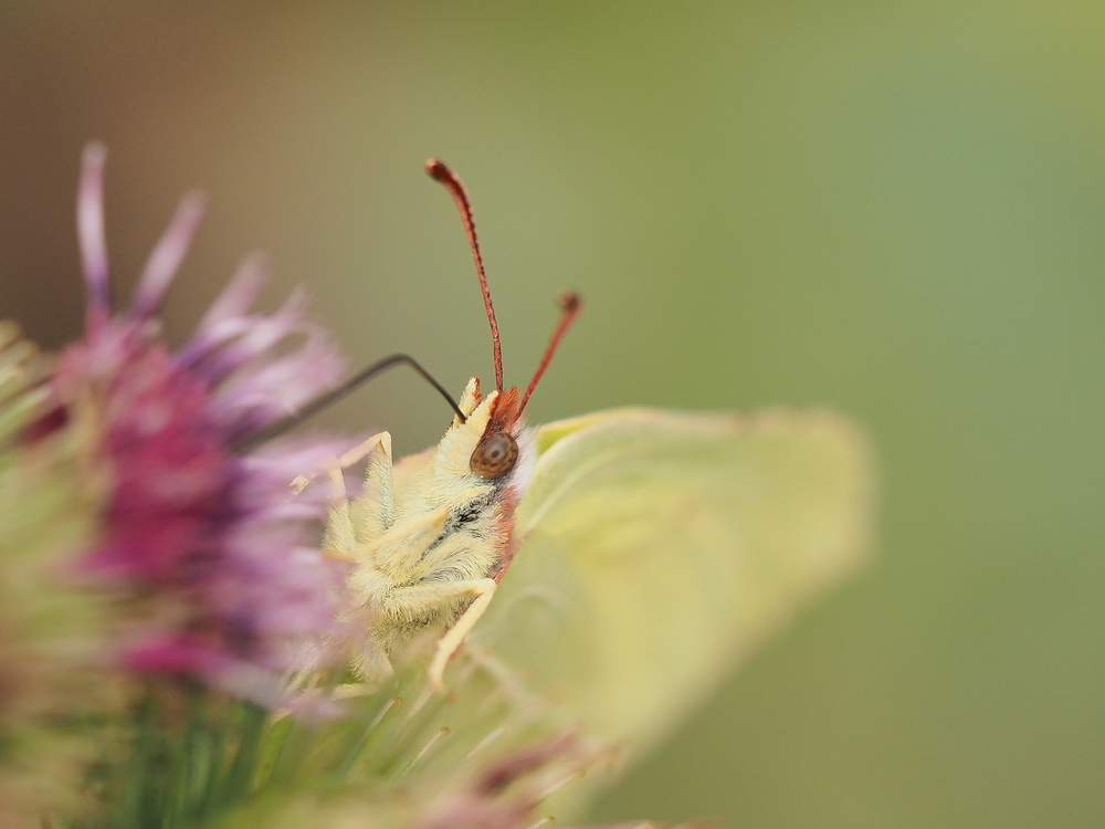 02.08.2025Das gefällt mir. Meines Erachtens gehören die Unschärfen der lila Blüte, grünen Pollen und hellgelben Flügeln genau an ihre Plätze.