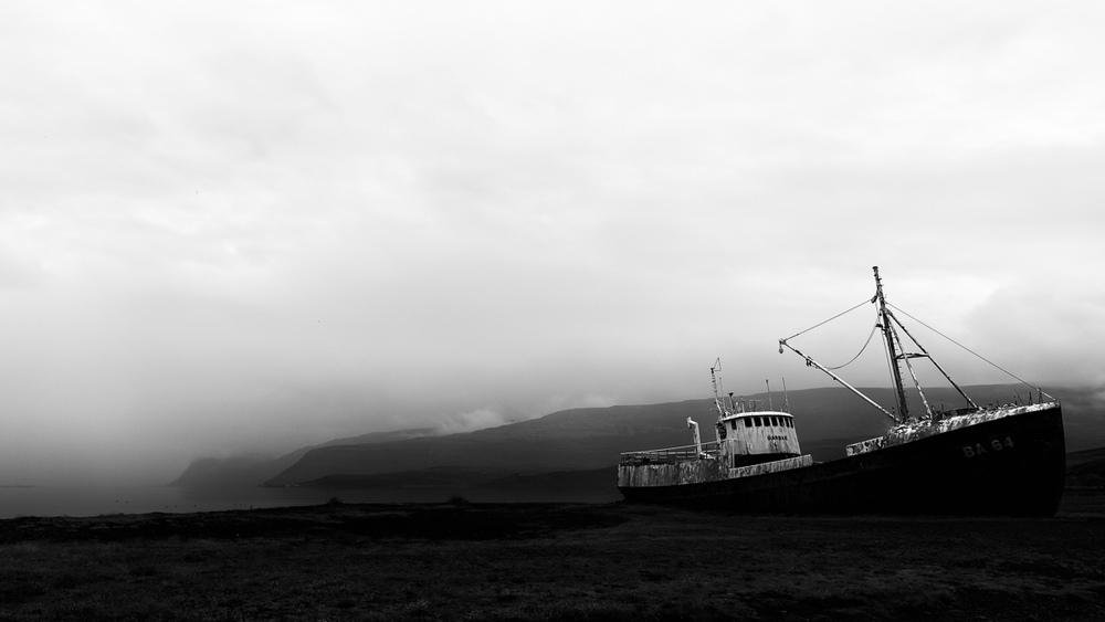 Das bekannte, bei Fotografen beliebte Wrack in Islands Westfjorden.Über die letzten Jahre hat sich der Zustand sichtbar verschlechtert. Diese Aufnahme ist ca. sechs Jahre alt.