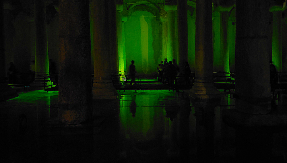 Aber zum Thema: Es handelt sich hier um das unterirdische Wasserreservoir, das Kaiser Justinian im 6. Jahrhundert erbauen ließ, um Stadt und Palast mit Trinkwasser versorgen zu können, 7000 Sklaven waren hiermit beschäftigt . Es fasste 80 000 Kubikmeter Wasser.