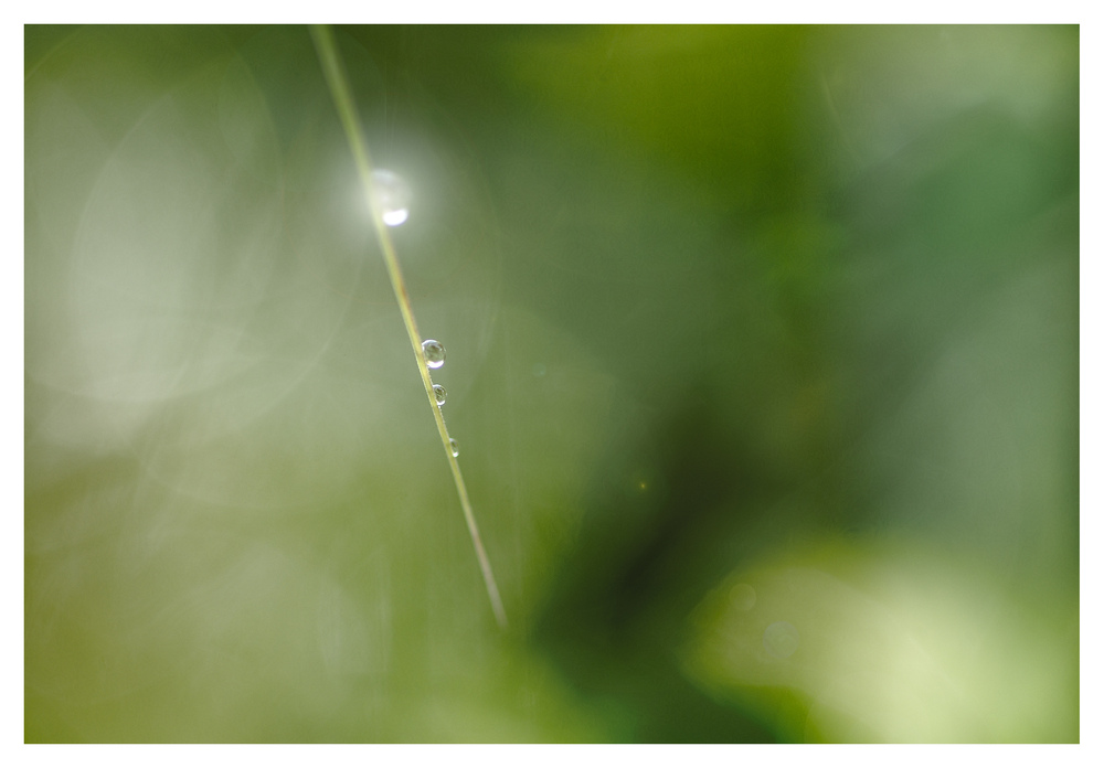 Eine sehr schöne minimalistische Aufnahme. Die Schärfe sitzt perfekt auf den kleinen Tropfen und die Tropfenform wird in der Unschärfe mehrfach wiederholt. Das Bokeh ist wunderbar und rundet dein Motiv ab. VG Krystina