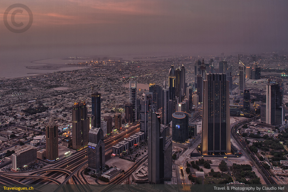 „Sheikh Zayed Road“Burj Khalifa Observation Deck, Dubai, Vereinigte Arabische Emirate