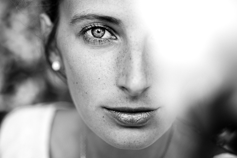 11.05.2015Nur ein Auge und den kompletten Mund zu zeigen, ist eine gewagte aber in diesem Fall durch die zarte Blüte in der Unschärfe gelungene Variante der Porträtfotografie.