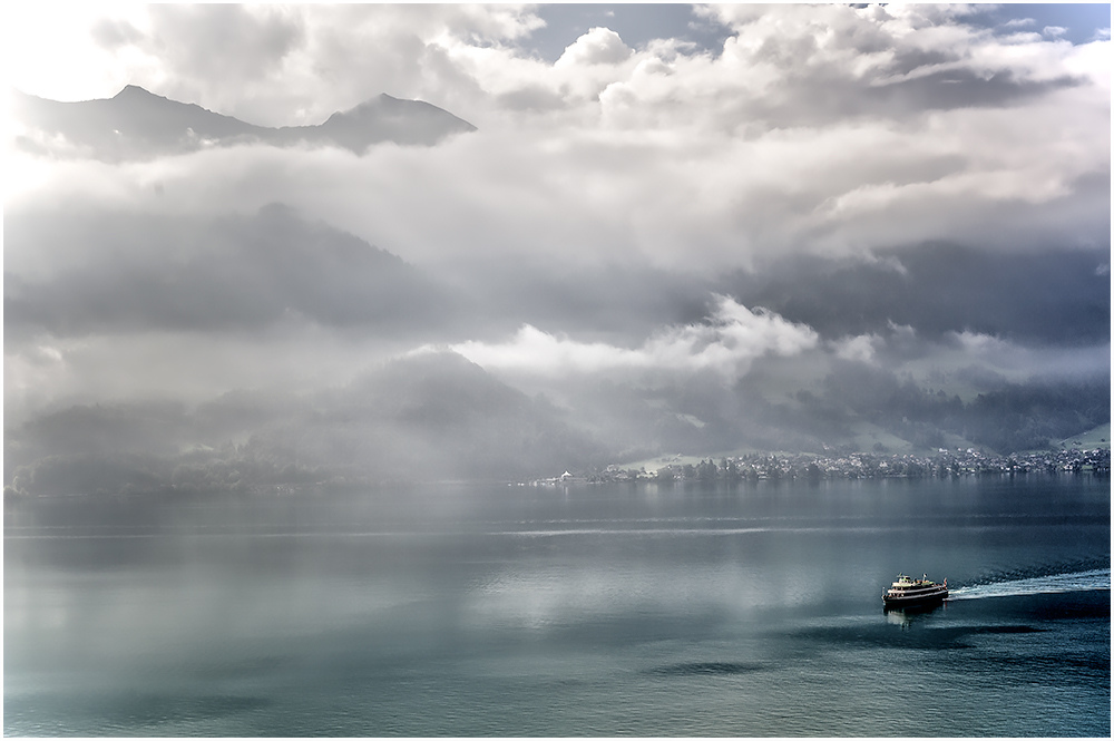 Phänomenale Aufnahme - die Wolken und der Dunst sin gigantisch - das Bild erzielt mit dem klein wirkenden Schiff auch eine sehr tolle Wirkung.