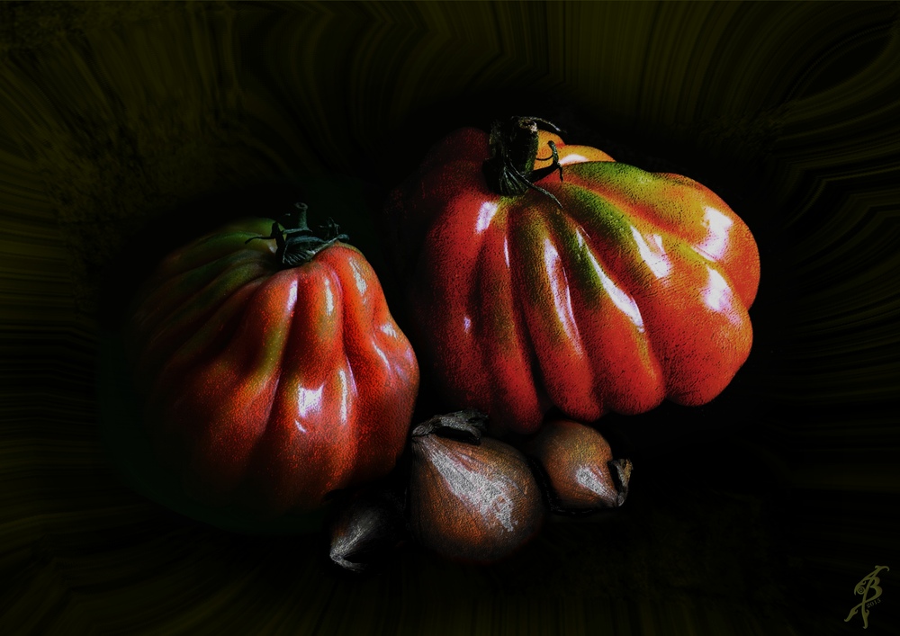 Wirklich wunderschön in Szene gesetzt mit Licht und Farben..... die speziellen Tomaten und Beilagen.....