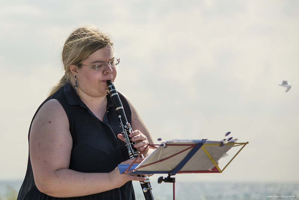 18.08.2015Der späte nachmittag war doch gar nicht so schlecht..sehr schöne und klare Aufnahme wobei die Musikerin richtig strahlt und die vorbeifliegende Möwe ist eine schöne Zugabe !!