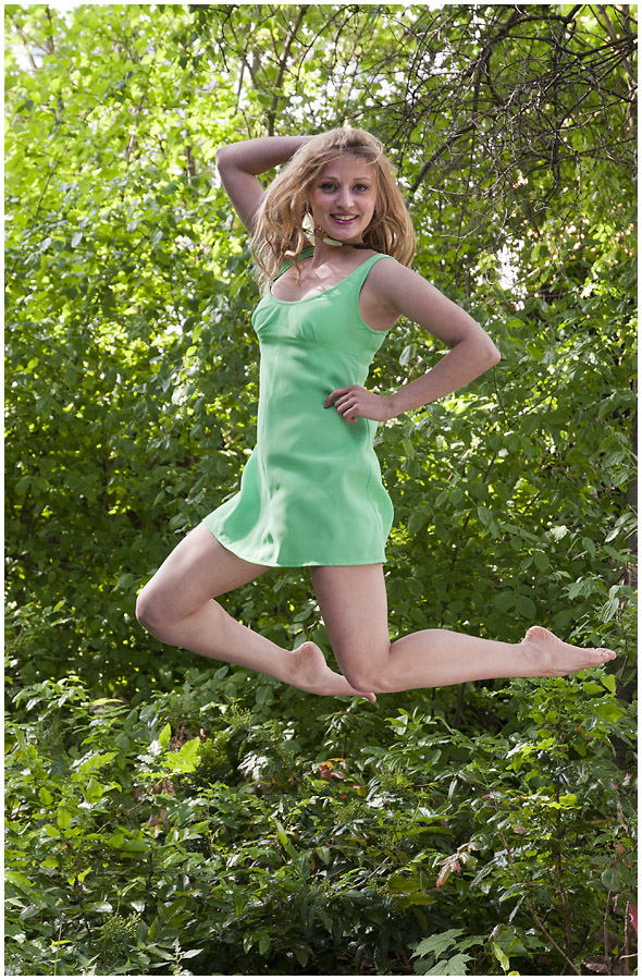 Haltung und Blick zur Kamera im Sprung, nicht schlecht. Ich hätte nur die Kette vorher abgelegt. Grüße Lennart