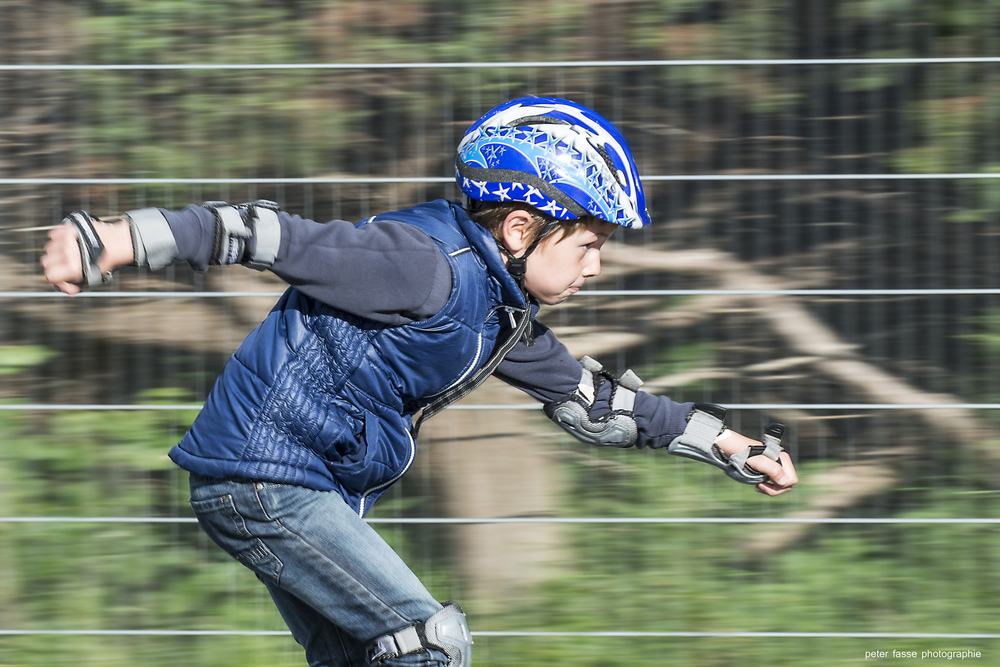 Die von mir sind alle mit Funkauslöser, Kamera und entfesseltem Blitz auf dem Stativ. Hier ein Mitzieher von Linus beim skaten. Der entschlossene Blick macht mir auch Angst J ….
