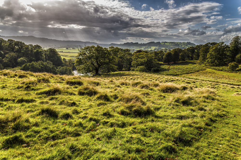27.10.2025Das ist eine wunderbare Landschaftsaufnahme. Licht und Schatten wechseln im gesamten Bild. In den beiden unteren Dritteln des Bildes die Wiese, stark strukturiert durch die Grashügel. Im oberen Drittel der vom Sonnenlicht durchbrochene Himmel. Darunter der Wald und die Landschaft in der Ferne als Trennlinie im Bild. Dieses Naturschauspiel hast du gut im Bild komponiert.