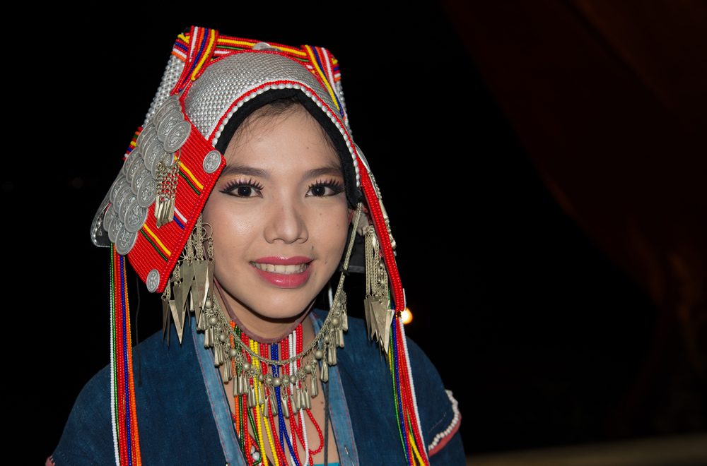 „Hübsche Myanmarin mit traditionellem Kopfschmuck“