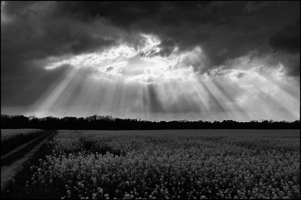 Ich sage jetzt einfach mal was ich noch mit dem Bild gemacht hätte: ich hätte entsprechend den Sonnenstrahlen hellere Flecke in diesem Pflanzen/Blühtenmeer eingebracht, damit wäre das gleichmässige Grau durchbrochen und würde die Dramatik des Himmels sich auch ein wenig in den Vordergrund/bzw Mittelfeld weitersetzen.