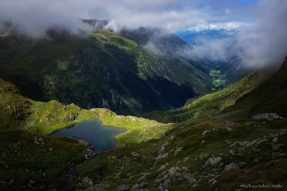 Eine tolle Landschaftsaufnahme! Besonders gefällt mir die Blickführung vom See übers Tal zu den Schneebergen im Hintergrund. Die Wolken sind das i-Tüpfelchen!
