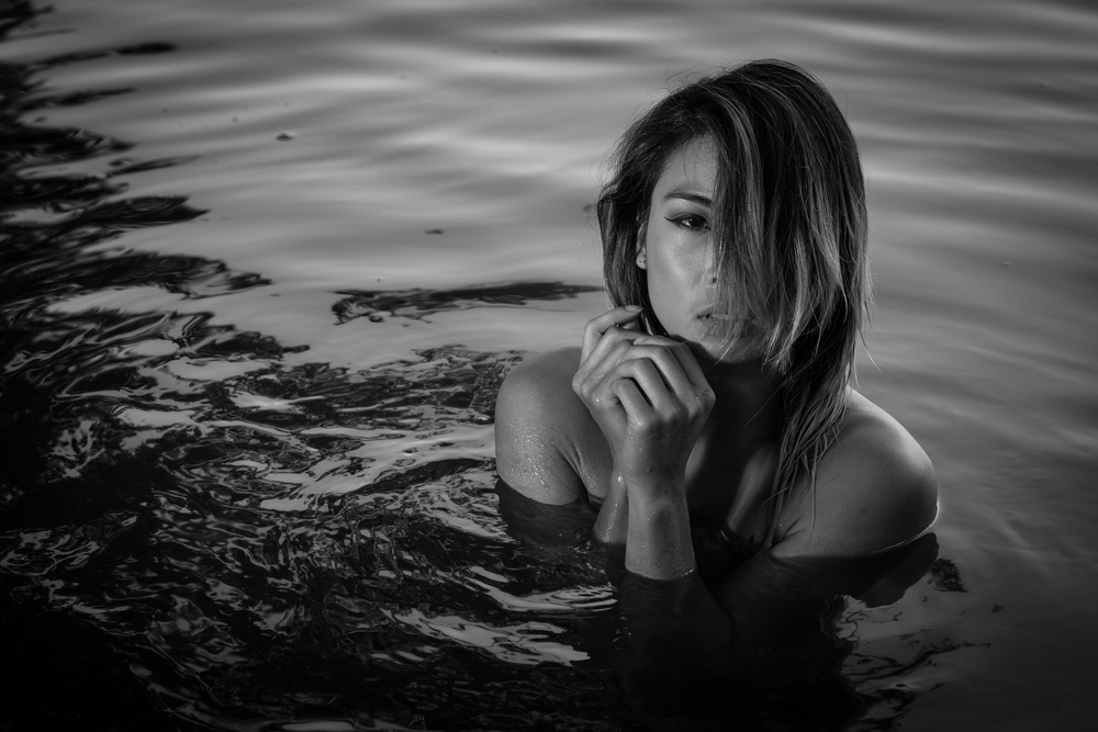 27.08.2016Sehr schönes sw-Portrait mit feinen Grauabstufungen.Die seidig glänzende Haut geht stufenlos in die ebenso weiche Wasseroberfläche über.