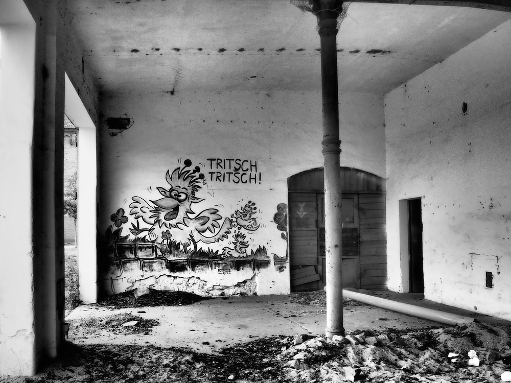 Auch hier alles dreckig, vernachlässigt und dem Verfall preis gegeben, aber man erahnt, dank des Elwedritsche-Graffito, noch die ursprünliche Atmosphäre ...