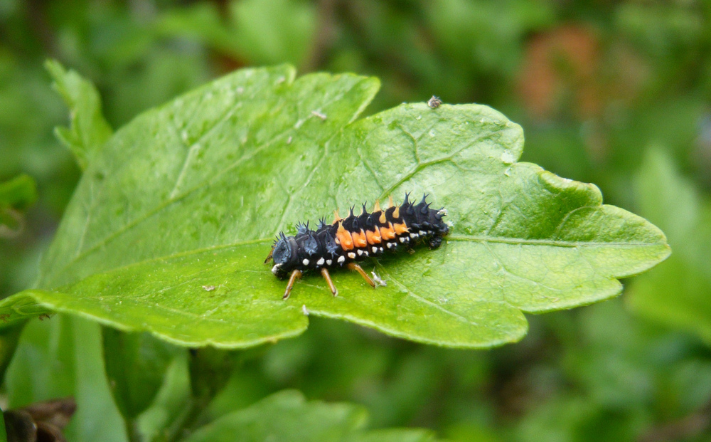 Wie auf einem Präsentierteller saß diese Larve des asiatischen Marienkäfers...