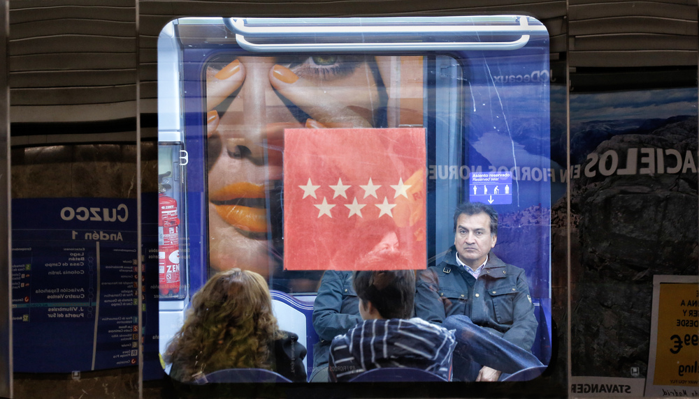 14.09.2016Ein dreifacher sogar: Sein Blick geht durch und durch. Sie schaut durch ihre Finger. Und wir blicken durch die stehende Metro auf ein Werbeplakat. Nur die Jugend gewährt uns mal wieder keinen Durchblick. Betont wird das Ganze durch das zentrierte, angedeutete Quadrat des Fensters und das rote Quadrat auf der vorderen Scheibe. W. Fotogrunderbar intensiv unter der Lupe, weil die Farbkontraste an Bedeutung gewinnen und die Augen noch intensiver wirken. Der Blick der Frau wird dann durch die Hervorhebung im roten Feld plötzlich wirksam. Sie ist, um im Wortspiel zu bleiben, die Familiendurchblickerin. Klasse Titel zu einem fesselnden Bild. Erstaunlich welch gute Arbeit der Stabi geleistet hat. Fotografen, die ohne stabilisierte Objektive groß geworden sind, haben eben doch eine bessere Haltung. Da ich selber erst seit 2007 fotografiere, bin ich da oftmals nicht so selbstverständlich achtsam.