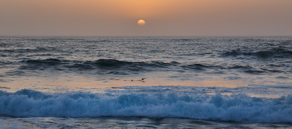 der kleine Vogel ist das I-Tüpfelchen in dieser wunderbaren Sundowner-mit-perfekter-Welle-Fotografie. lg peter