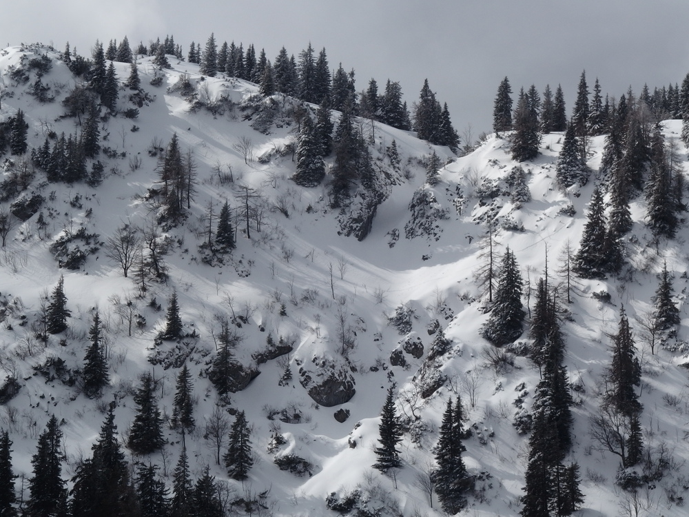 Schnee, Berge, Wald