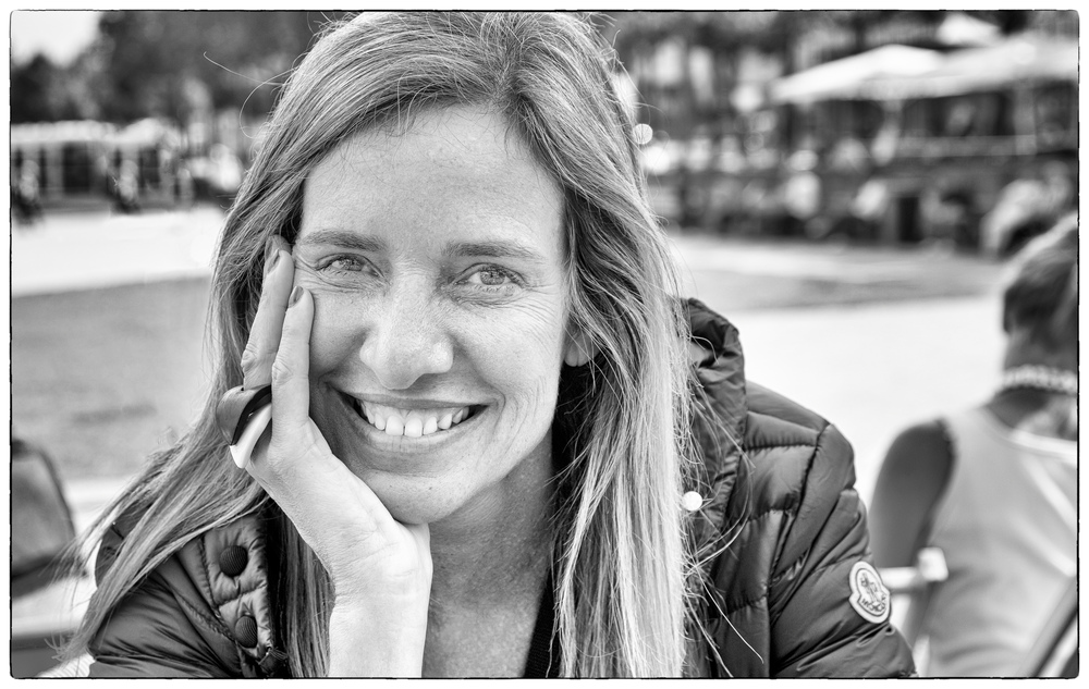 08.09.2017Eine Momentaufnahme, die durch das Gesicht der Protagonistin besticht - ungekünstelt, jenseits von Posing und Klischee, mit einem Lachen, das die Augen einbezieht, nicht gestellt wirkt, weswegen ich hier auch von Begegnung sprechen würde. Schneiden würde ich nichts, links nicht um den Haaren nicht die Luft zunehmen, rechts nicht, um der Cafészene genügend Raum zu lassen. Mich würde aber interessieren, warum Du den Rahmen mit der ausgefransten Kontur genommen hast - um die Direktheit der Szene zu betonen?