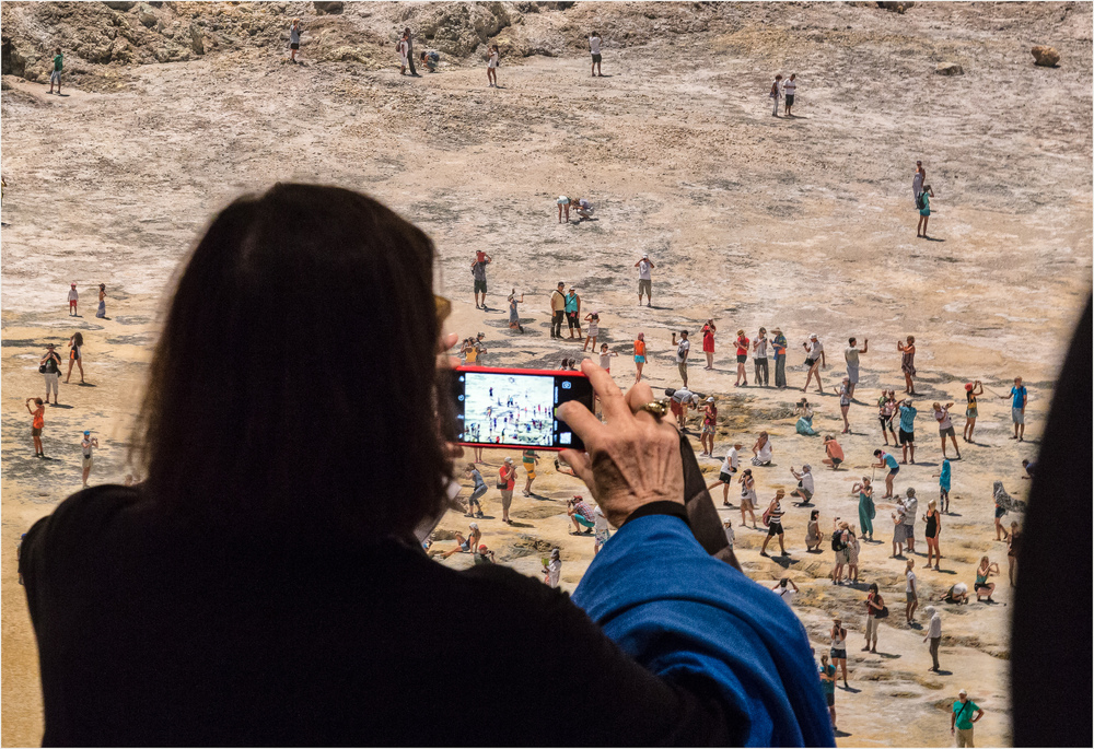 12.09.2017Genau richtig, die Schärfe auf die Fotografie und nicht auf das Smartphonedisplay zu legen. Da hätte ich vielleicht die falsche Entscheidung getroffen. Der Schatten rechts stört mich überhaupt nicht, eher spannend. Sehr schön finde ich das blaue Tuch und den unterschiedlichen Weißabgleich Deiner Kamera zum Smartphone. Auch ich habe die Szene im Hintergrund als real wahrgenommen. Fotomontage meint hier, dass der Künstler die Personen in die Landschaft gesetzt bzw. diese aus vielen Einzelbildern ausgewählt hat, die von einem Standpunkt aus fotografiert wurden? Spannende Reihe, die Du von der Documenta zeigst.
