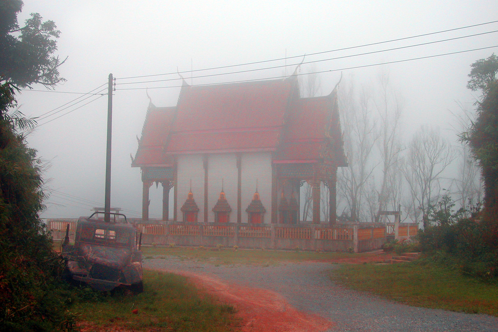 Bei einer Tour entlang der Gebirgsgruppe an der burmesischen Grenze entdeckten wir im Nebel diesen kleinen Tempel. Eine mystische Stimmung und der ausrangierte abgestellte Lastwagen passte voll in die Atmosphäre.