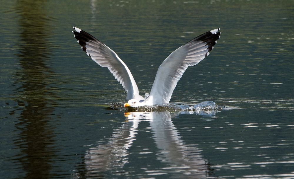 Mich beeindrucken besonders die Flügel, die sich auch noch im Wasser spiegeln. Du hast die Gunst der Sekunde wirklich gut genutzt! VG Verena