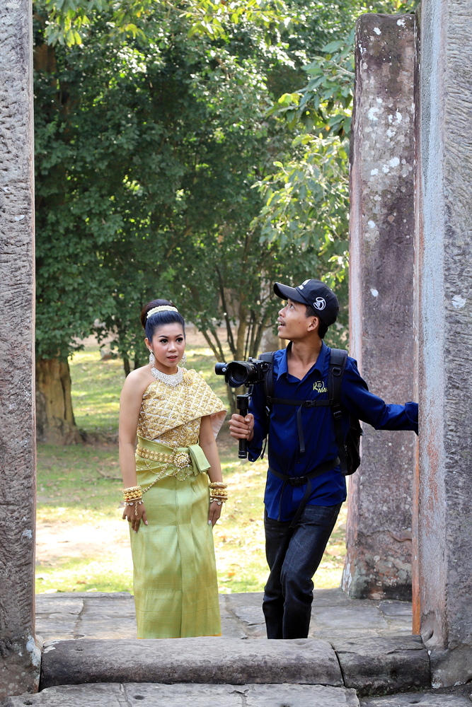 Angkor wird auch gern für Hochzeits-Shootings gewählt. Diese Braut sucht gerade mit ihrem Fotografen nach einer geeigneten Location. Dabei ist ihr wohl der Bräutigam vorübergehend abhanden gekommen. - Ich zeige ihn euch morgen :-)