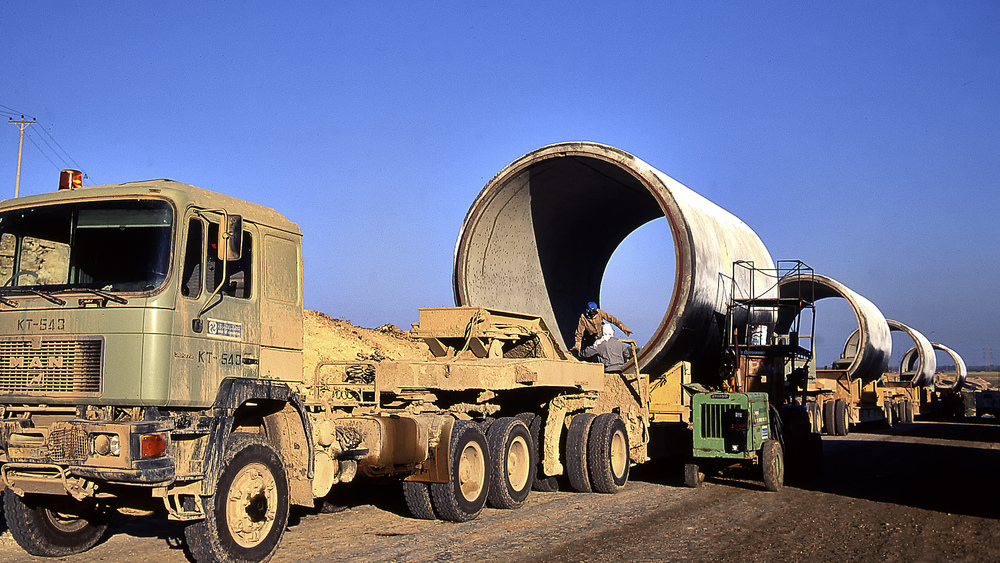 Das sind schon gigantische Rohre, die hier verlegt werden.Schade, daß der Transporter nicht ganz auf dem Bild ist.