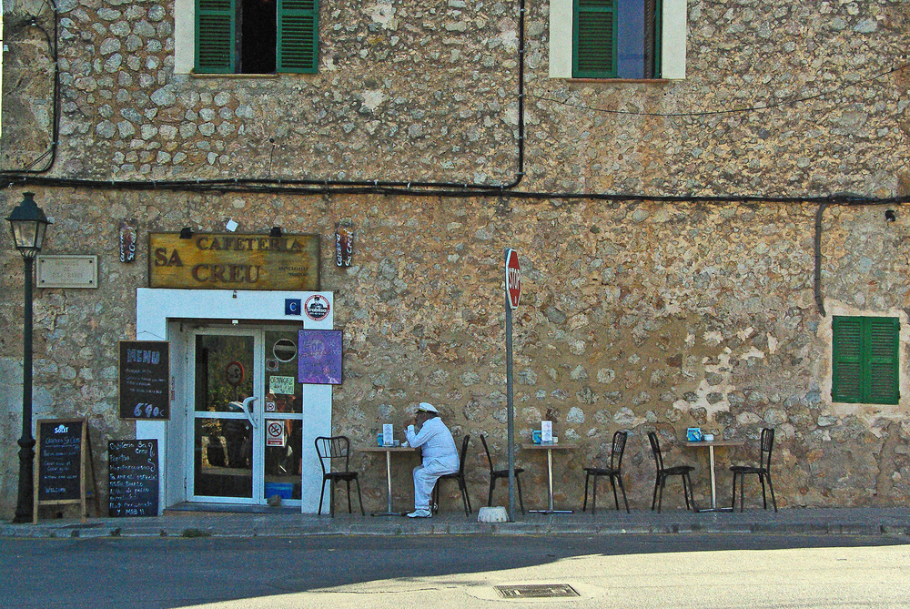 Gesehen bei einem Rundgang in Soller auf Mallorca. Der Kapitän bei einer "Kaffeepause"