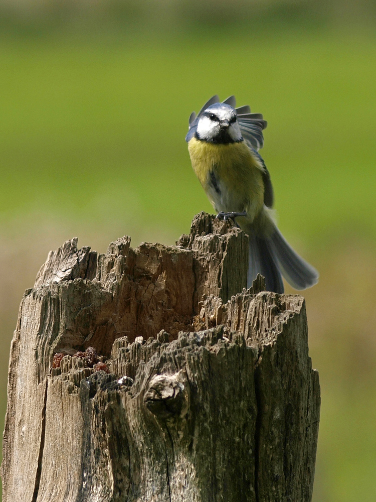 Ich fand es besonders lustig als ich die Federkrone hinter der Blaumeise entdeckte.