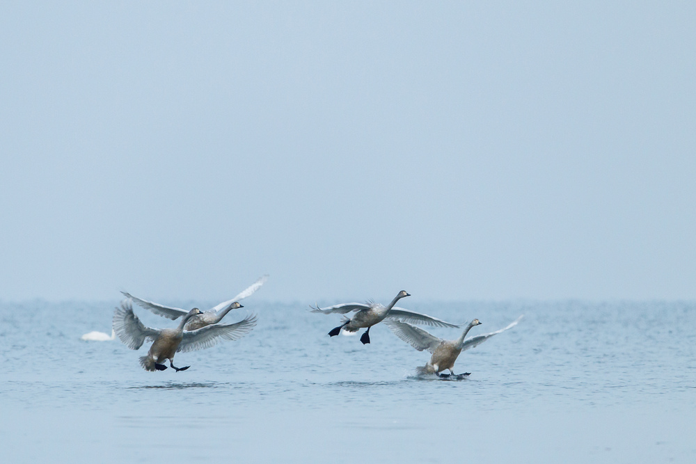 aufgenommen am frühen Morgen, leider trübes Licht aber viel Flugaktivität der ca. 250 Singschwäne in der Friedrichshafenen Bucht vor Eriskirch.
